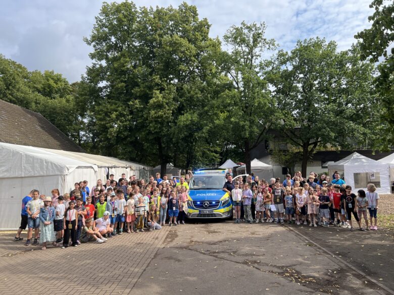 Der Alltag in der Kinderstadt auf dem Brückberg wird jede Woche für einen kurzen Augenblick unterbrochen, sobald das Polizeiauto auf das Gelände fährt. Am Mittwochvormittag durften die Bürger*innen der Kinderstadt der Siegburger Polizei alle Fragen rund um den Job als Polizist*in stellen. Besonders gut haben die Kids vom Kinderstadt-Ordnungsamt aufgepasst, denn sie sorgen in Mini Siegburg für Ordnung auf den Straßen. Auch das Polizeiauto wurden unter die Lupe genommen: Die Kinder durften das Blaulicht anmachen und sich sogar hinter das Steuer setzen. Für das ein oder andere Kind der Kinderstadt ging damit ein kleiner Traum in Erfüllung.