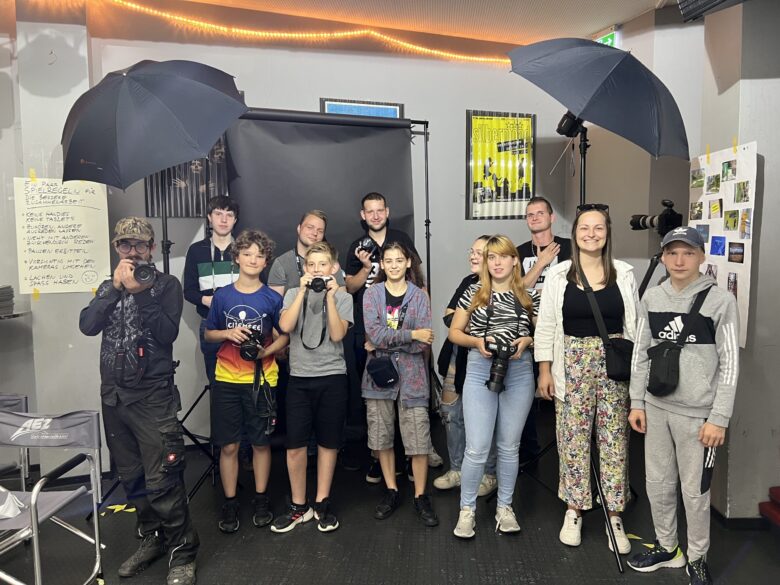 Täglich ab 15 Uhr trafen sich die Teilnehmer*innen mit der Fotografin Birgit Wagner und dem Fotografen Peter Niemann zunächst zum Theorieunterricht im Kulturcafé. Nach den Basics rund um das Fotografieren ging es an die Kameras. Die Jugendlichen erkundeten das Jugendzentrum und die nähere Umgebung mit ihren eigenen oder geliehenen Kameras oder ihren Handys. Das Ziel war für alle das Gleiche: Ein Foto für die neue Fotowand des Kulturcafés aufzunehmen. Nach den fünf Tagen wurde aus den schönsten Fotos der Jugendlichen die Fotowand gestaltet. Jeder der wollte, konnte sich als Fotograf*in oder Model auf der Wand verwirklichen. Neben Fotos von den Tischtennisspielen oder dem gemeinsamen Beisammensitzen wurden auch die Mitarbeitenden bei ihrer Arbeit abgelichtet, denn die Fotowand soll bestmöglich den Alltag des „Kultis“ zeigen.
