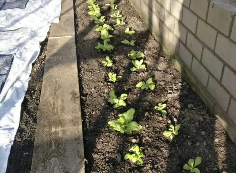 Die im Herbst gepflanzten Salate wachsen trotz der winterlichen Temperaturen um die Wette.