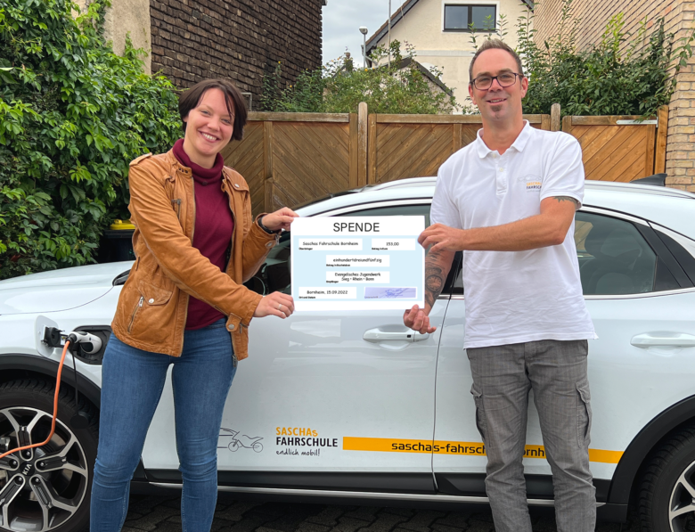 Die Einnahmen des Nachmittags spendet Saschas Fahrschule deshalb an die Bornheimer Einrichtungen des Evangelischen Jugendwerks Sieg • Rhein • Bonn.